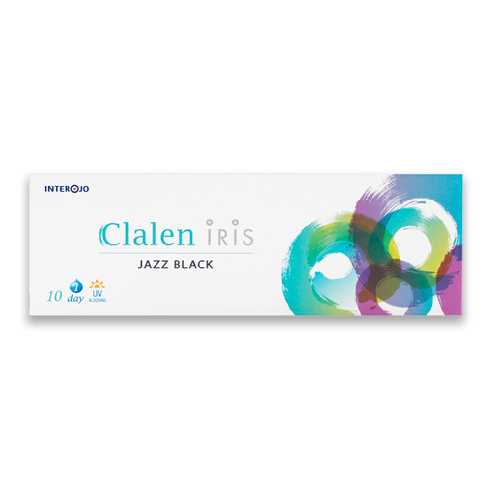 Clalen Iris 1 Day Jazz Black daily colored contacts (30-pack) feature a two-tone black gradient design inspired by the iris, with a 12.9 mm graphic diameter (14.2 mm total) for subtle enlargement. Made of Methafilcon A (55% water) with an 8.6 mm base curve for breathable comfort, plus HD Vision, Sodium Hyaluronate gettability, and UV-blocking for healthy eyes.