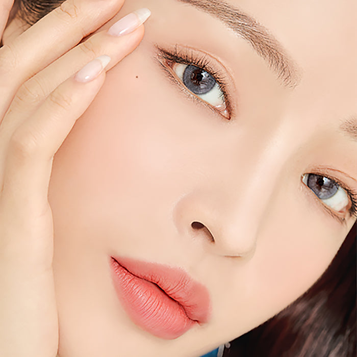 Creamy blue-gray gradient with a feather-soft ring for gentle depth. A natural 13.1 mm G.DIA on a 14.0 mm lens brightens eyes without looking overdone.