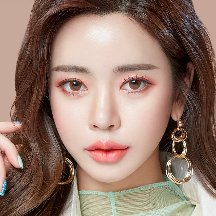 Soft brown with a subtle, feathered ring and 13.6 mm graphic gentle brightening and realistic enlargement for everyday wear.
