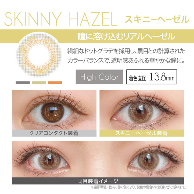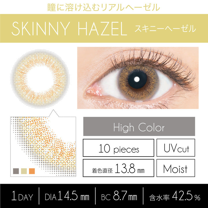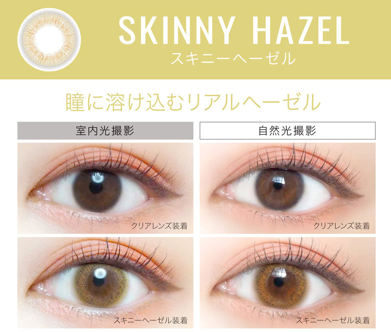 Three-tone hazel that melts into the iris. A 13.8 mm color ring and fine dot gradient add sheer, realistic depth without harsh edges.