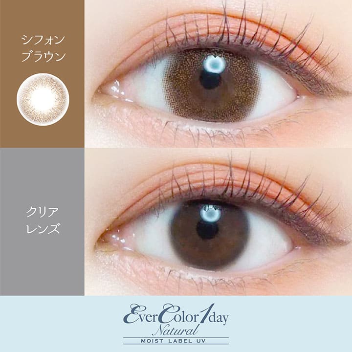 Chiffon Brown blends a powdery inner brown with a softly blurred edge for a seamless, natural-looking enlarge. The 13.8 mm graphic diameter adds gentle definition while the wrap-in tint and MPC-moist lens keep eyes comfortable and clear throughout the day.