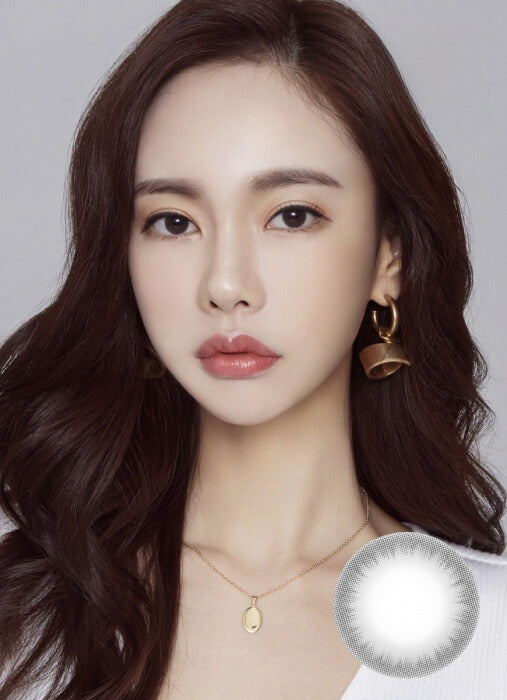 Ash-gray ombré with a delicate shimmer ring; the 13.3 mm graphic enlarges softly while a feathered rim keeps edges clean and natural.
