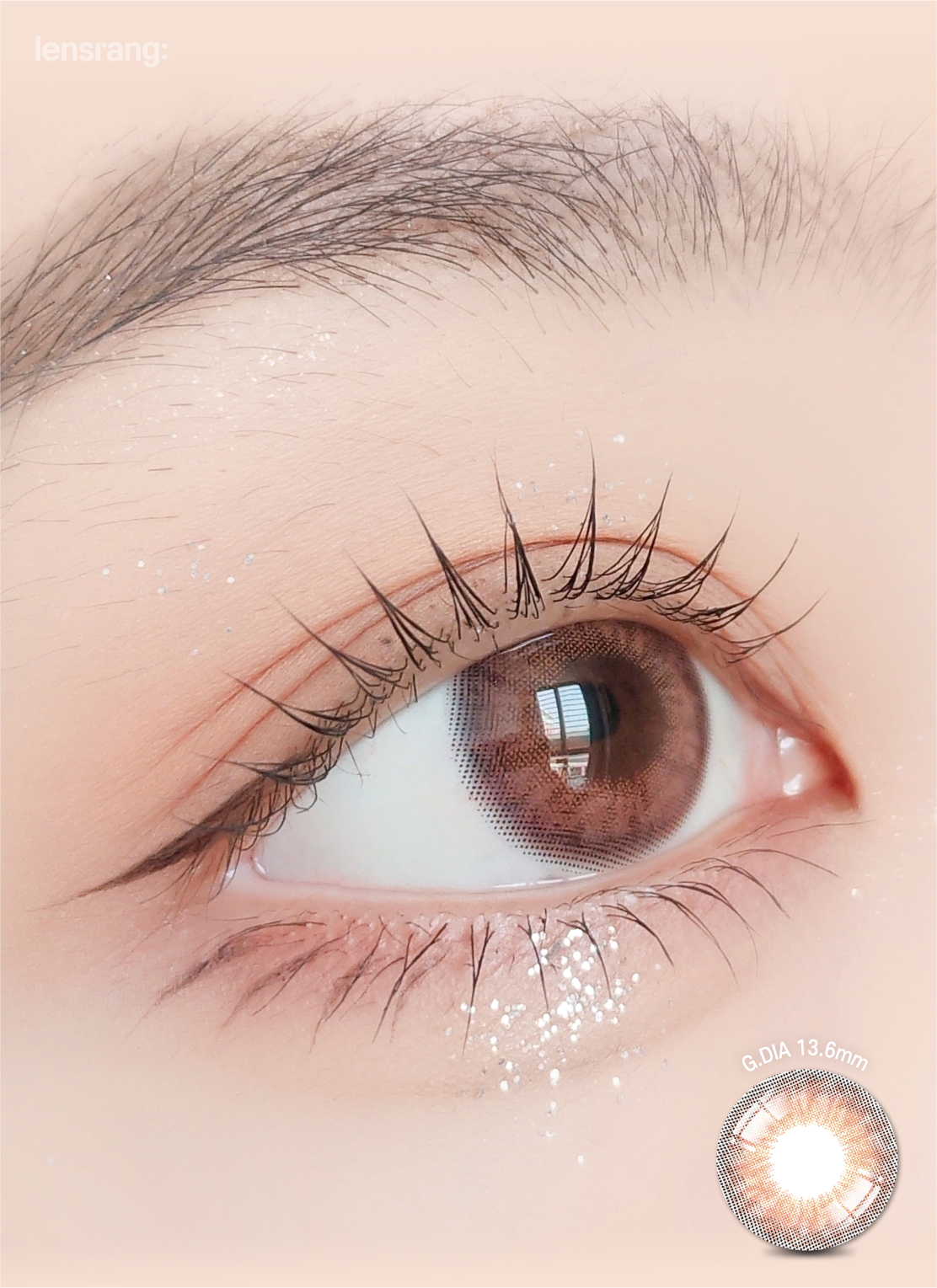 Rosy pink-brown tones with a softly defined ring brighten the iris naturally. The 13.6 mm graphic enlarges noticeably while staying wearable.