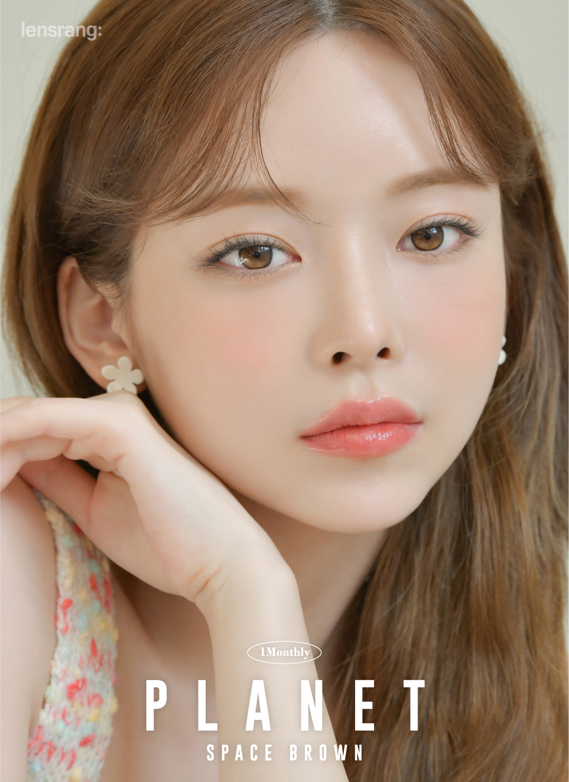 Lensrang Planet Space Brown layers a golden inner glow, soft brown mid-tone and defined ash rim on a 13.2 mm graphic diameter to brighten and enlarge dark eyes with a subtle, space-inspired sheen. The prominent yet refined limbal ring and smooth three-tone gradient make this a natural-looking brown lens that still stands out in photos and everyday looks.