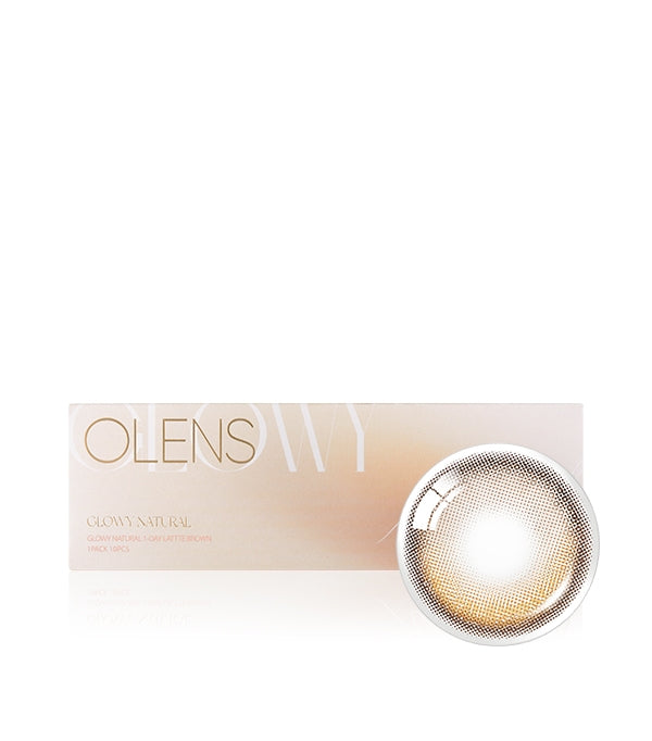 The OLENS Glowy Natural 1 Day – Latte Brown lenses are meticulously designed to enhance your eyes with a natural, radiant effect. Their 14.2mm total diameter and 13mm graphic diameter deliver a subtle, elegant enlargement. The soft brown gloss a multi-shade design with defined edges—creates a glowy, three dimensional look that remains realistic under all lighting. Constructed with 43% water content in breathable HEMA material and shaped with an 8.7 mm base curve, these daily disposables blend comfort, hydration, and style seamlessly.