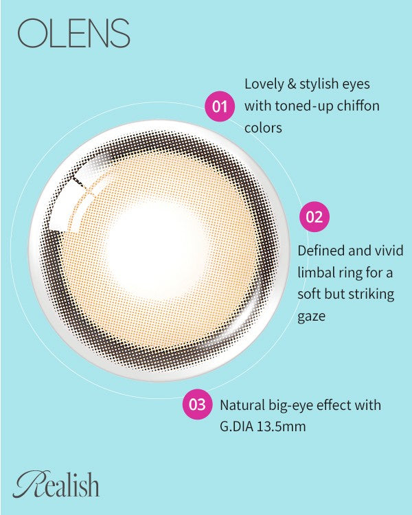 Embrace a lovely, stylish mood with Realish Brown’s soft, toned-up chiffon shade. Finished with a vivid limbal ring and a 13.5 mm graphic for striking yet gentle definition.