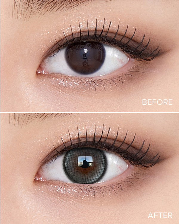 Deeply defined, mystically lit eyes with Secret Tint Gray. A waterlight hue and unique iris-highlight pattern create a “lit-from-within” glow with natural definition.