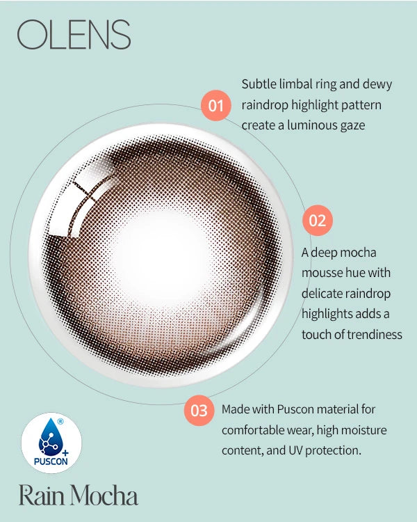 Rain Mocha uses a raindrop highlight pattern over a deep mocha gradient to create a calm, glossy “rain-kissed” shine—finished with a 13.5mm graphic diameter for natural enlargement and clear definition.