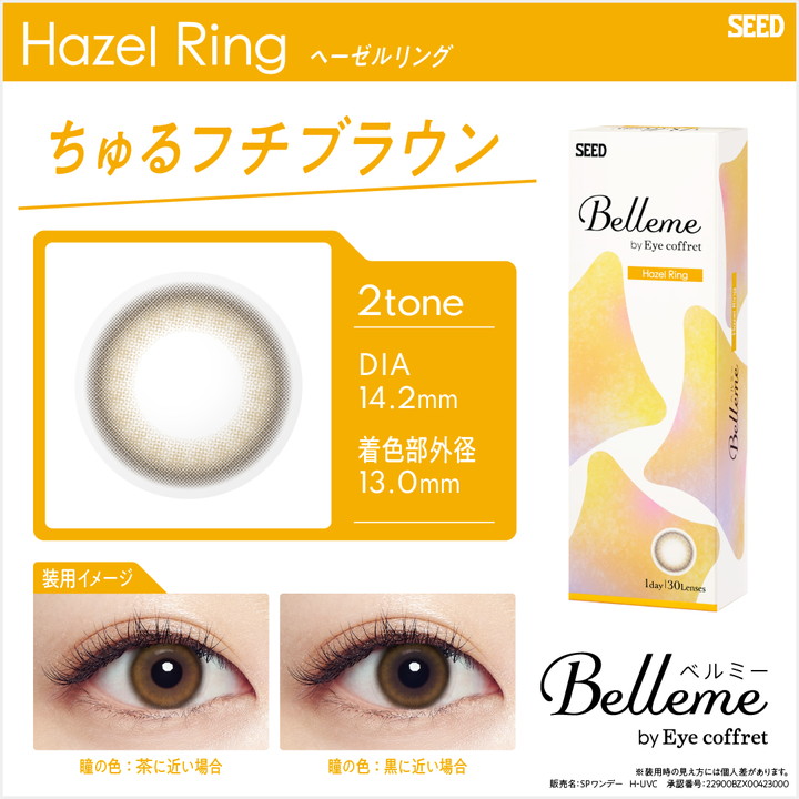 Fine hazel ring with a 13.0 mm G.DIA and a 6.5 mm opening - subtle, natural definition with a crisp pupil.